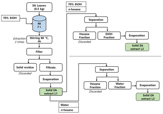 Schematic representation of EA leaves extract L1, L2, and L3 preparation.