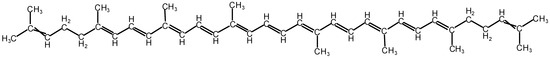 The chemical molecular structure of lycopene (i.e., C40H56).