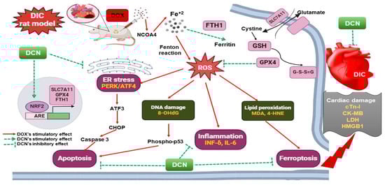 Nevertheless, to the best of our knowledge, no studies have investigated DCN’s cardioprotective effects on DIC. Therefore, our objectives were to assess the potential cardioprotective effects of DCN against cardiac dysfunction and cardiomyocyte injury triggered by DOX. Furthermore, we aimed to gain mechanistic insights into the signaling cascades involved in this protective role, highlighting the potential anti-ferroptosis activity of DCN in cardiomyocytes as a novel molecular mechanism.
