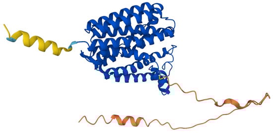 The tertiary structure prediction from amino acidic sequences has always been a major challenge in bioinformatics, but recent advances in artificial intelligence have brought about a revolution in this field []. AlphaFold2 is a machine learning method that not only predicts protein structures with high accuracy using both evolutionary and geometric information, but also determines a confidence value on a residue level. This is possible thanks to an innovative architecture based on artificial neural networks [,]. This technology was applied to all known sequences, and the AlphaFold Protein Structure Database currently holds more than 200 million predicted structures [], including hCOQ2.