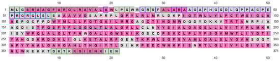 - Waterhouse, A.M.; Procter, J.B.; Martin, D.M.; Clamp, M.; Barton, G.J. Jalview Version 2—A multiple sequence alignment editor and analysis workbench. Bioinformatics 2009, 25, 1189–1191. [Google Scholar] [CrossRef]