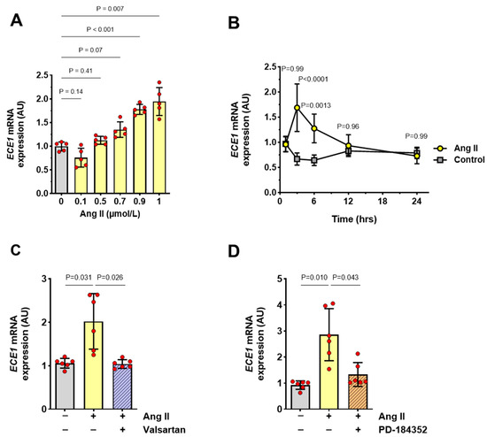 3.2. Induction of ECE1 Expression by Ang II in HMECs