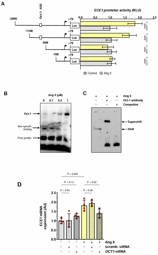 - Kamhieh-Milz, J.; Chen, L.; Goettsch, C.; Pfefferkorn, A.M.; Hofmann, A.; Brunssen, C.; Müller, G.M.; Walther, T.; Ashraf, M.I.; Moll, G.; et al. Ang II Promotes ET-1 Production by Regulating NOX2 Activity Through Transcription Factor Oct-1. Arter. Thromb. Vasc. Biol. 2023, 43, 1429–1440. [Google Scholar] [CrossRef] [PubMed]