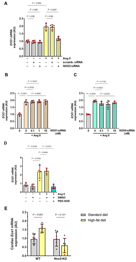 3.4. Role of NOX2-Derived Superoxide Anions in the Induction of ECE1 Expression