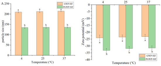 | Days | 4 °C GWP-SIF PGWP-SIF | 25 °C GWP-SIF PGWP-SIF | 37 °C GWP-SIF PGWP-SIF | 4 °C GWP-SIF PGWP-SIF | 25 °C GWP-SIF PGWP-SIF | 37 °C GWP-SIF PGWP-SIF | ||||||