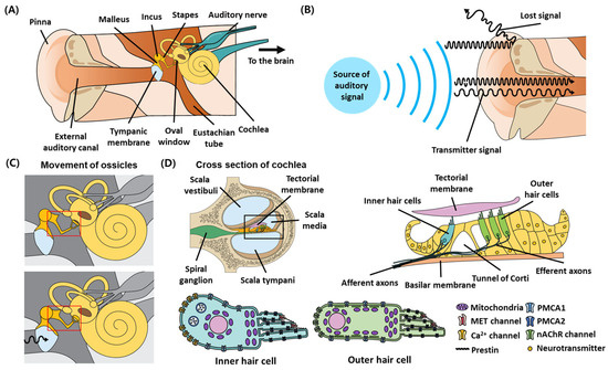 - Caprara, G.A.; Peng, A.W. Mechanotransduction in Mammalian Sensory Hair Cells. Mol. Cell. Neurosci. 2022, 120, 103706. [Google Scholar] [CrossRef]