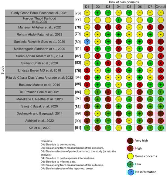 | Swikant Shah et al., 2020 [83] | Randomized controlled trial. | Seventy-four patients. | Analysis of the effects on RIOM in 74 patients with head and neck cancer who were set to receive an RT of 0.15% benzydamine mouthwash and 0.1% freshly produced curcumin utilizing nanoparticles. | Every week for six weeks, RIOM was evaluated once a week using the WHO criteria. Two types of analyses, namely modified intention to treat (MIT) and per protocol (PP), were conducted to test the null hypothesis that there is comparable effectiveness between the prevention and severity of RIOM. | While mouthwashes were not able to stop RIOM from happening altogether or lessen its severity, using a mouthwash containing 0.1% curcumin was able to greatly postpone the onset of RIOM. |