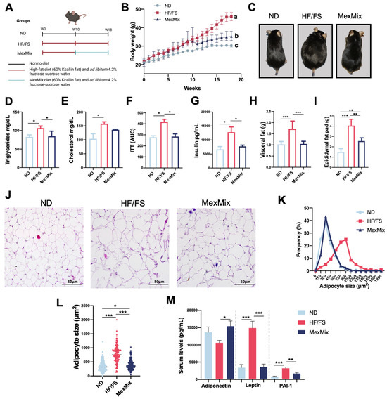 3.1. MexMix Induced Metabolic and Adipogenic Variations in Mice