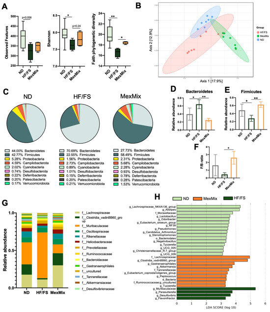3.2. MexMix Changed Gut Microbiota Composition in Mice
