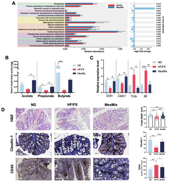 3.3. MexMix Intervention Restored Intestinal Health in Mice