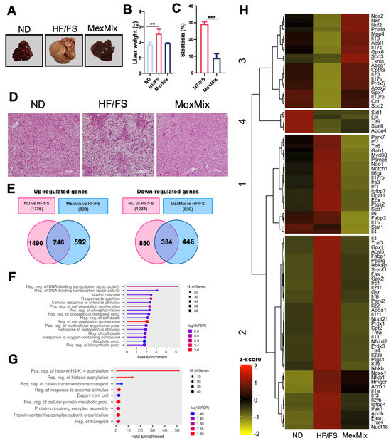 3.4. MexMix Reduced Liver Steatosis and Modified Hepatic Total Gene Expression in Mice