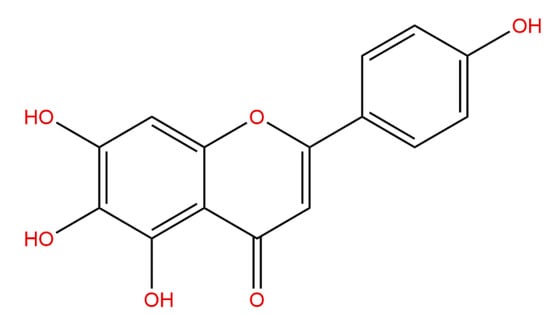 Scutellarein (synonyms: 6-hydroxyapigenin; CAS#529-53-3; Figure 1) is one of the active constituents present in both the aerial parts and roots of Scutellaria baicalensis Georgi [14,15]. The aerial parts, including the stems and leaves, are consumed as a folk “Huangqin tea” in northern and southwest China [16]. The roots are widely used as a traditional Chinese medicine for the treatment of respiratory infections [17,18,19]. Scutellarein is also the metabolite of scutellarin (CAS#27740-01-8), which is capable of relieving LPS-induced ALI [20,21], and scutellarein can suppress LPS-induced inflammatory responses in mouse peritoneal macrophages (RAW264.7) [22]. Therefore, we surmised that scutellarein should be an active constituent for the treatment of infectious respiratory inflammation. As we know, the lungs present the largest epithelial surface for interactions with infectious pathogens and toxins that cause acute lung injury. Epithelial cells can produce a spectrum of pro-inflammatory cytokines, chemokines, as well as ROS [23,24]. In the present study, we investigated the effects of scutellarein on ROS and the inflammatory mediators of LPS-activated BEAS-2B cells (a human bronchial epithelial cell line) and LPS-induced ALI mice.