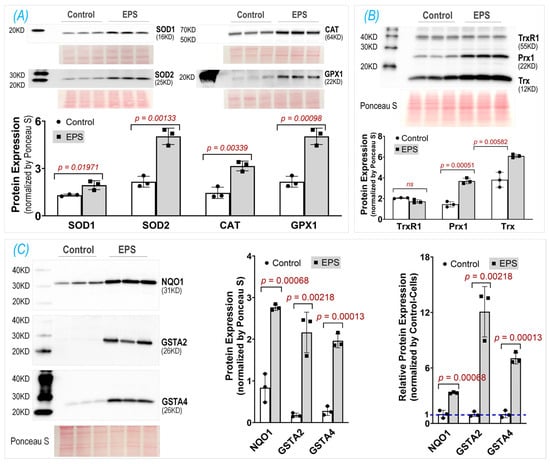 3.3. EPS Upregulates Multiple Antioxidant Proteins