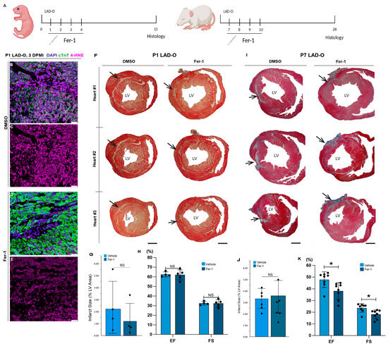 3.1. Anti-Ferroptotic Treatment Does Not Improve Heart Regeneration after MI