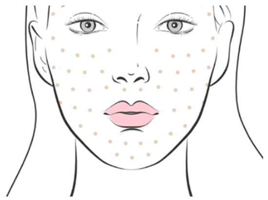 Micropapule technique used for facial administration of CBL. This technique consists of administering small volumes of CLB at different points (papules) distributed throughout the area of the face where the product needs to be applied.