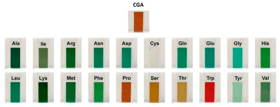 Like other protein–polyphenol complexes, hydrogen bonding and hydrophobic interactions are the dominant non-covalent interactions between proteins and CGAs [69,70]. Hydrogen bonding involves the bonding between the hydrogen-donating capabilities of CGAs and the carboxyl groups of proteins. In this respect, the polar amino acid side chains of proteins, such as serine, tyrosine, threonine, and asparagine, bond with the hydroxyl groups of CGAs. On the other hand, the hydrophobic interactions can be caused by the binding of hydrophobic or non-polar amino acids (e.g., alanine, valine, leucine, proline, tryptophan, glycine, methionine, isoleucine, and phenylalanine) to the non-polar aromatic rings of CGAs [14,15]. In this regard, Ren et al. [71] reported that three hydrogen bonds are formed between the hydroxyl groups of CGA and GLN59, VAL43, and TRP19 of β-LG with bond distances of 2.18, 2.68, and 2.71 Å, respectively. These results were also confirmed with the FTIR spectra analysis, indicating that hydrogen bonds were formed between CGA and β-LG. In another study, Zhou et al. [72] revealed that under an acidic condition (i.e., pH 6.0), CGA binds to eight amino acid residues of myofibrillar protein (MP), including ASN50, ASN156, ASP157, ASN158, SER160, THR109, LYS108, and LYS596 through hydrogen bonding. On the other hand, under an alkaline condition (i.e., pH 8.5), CGA exhibited strong interactions with other binding sites of MP, such as ASN50, LEU55, TYR58, ASN156, Gly105, TYR114, and PRO51. The non-covalent interactions between MP and CGA under alkaline conditions can also be involved in hydrophobic forces. Therefore, these findings show that not only the type of protein but also the environmental conditions can play a crucial role in protein–CGA complexes.