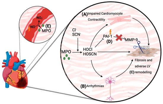 - Davies, M.J.; Hawkins, C.L. The Role of Myeloperoxidase in Biomolecule Modification, Chronic Inflammation, and Disease. Antioxid. Redox Signal. 2020, 32, 957–981. [Google Scholar] [CrossRef]