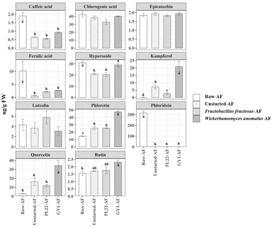 - Filannino, P.; Di Cagno, R.; Addante, R.; Pontonio, E.; Gobbetti, M. Metabolism of Fructophilic Lactic Acid Bacteria Isolated from the Apis mellifera L. Bee Gut: Phenolic Acids as External Electron Acceptors. Appl. Environ. Microbiol. 2016, 82, 6899–6911. [Google Scholar] [CrossRef] [PubMed]
