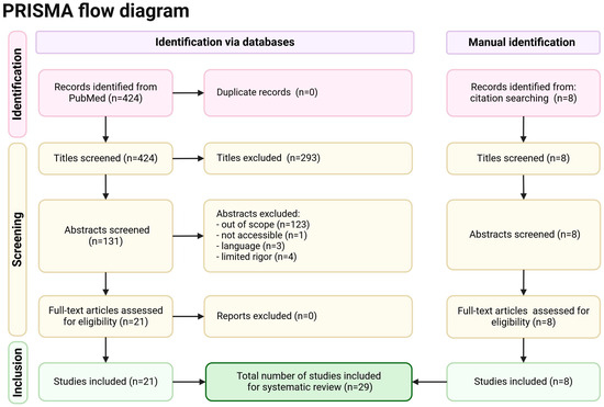 PRISMA flow diagram with exclusion criteria for the selection of sources for the purpose of the review [7].