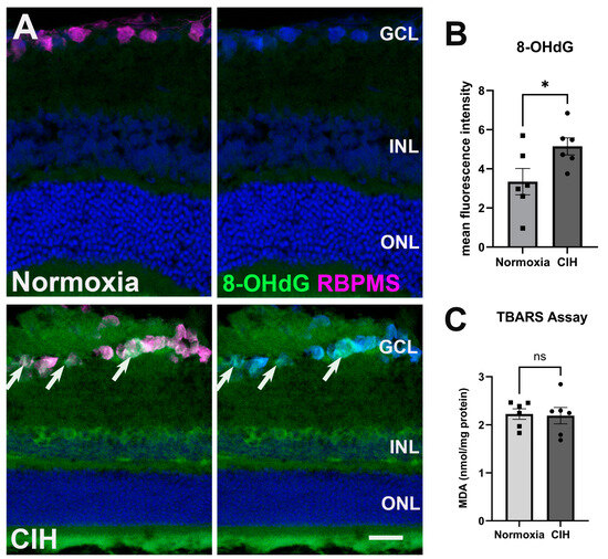 APA StyleDonkor, N., Gardner, J. J., Bradshaw, J. L., Cunningham, R. L., & Inman, D. M. (2024). Ocular Inflammation and Oxidative Stress as a Result of Chronic Intermittent Hypoxia: A Rat Model of Sleep Apnea. Antioxidants, 13(7), 878. https://doi.org/10.3390/antiox13070878