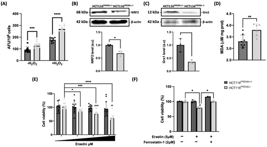 3.2. Lack of PRDX6 in HCT116 Cells Induces Oxidative Stress and Lipid Peroxidation Sensitizing Cells to Ferroptosis