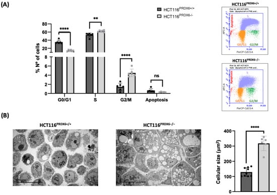 3.5. Absence of PRDX6 in HCT116 Cells Triggers Cell Cycle Arrest in G2/M
