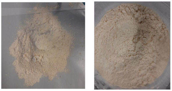 The initial raw material was composed of mixed cooked tuna (Yellowfin Tuna) leftovers coming from the company Generale Conserve, ASdoMAR® (Olbia, Italy), which produces canned tuna for human consumption. After a patented process of mild dehydration performed by Themis S.p.A. (Legnano, Italy) [28] the tuna fish biomass (TFB) was transformed into a heterogeneous powder, referred as tuna fish powder (TFP) (Figure 1), which was the starting point for the extraction of fish protein hydrolysates, both with and without the addition of an Alcalase to carry out an enzymatic hydrolysis extraction.