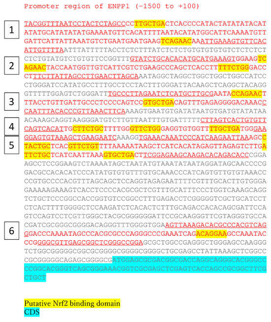 3.4. Transcriptional Regulation of ENPP1 Expression by Nrf2