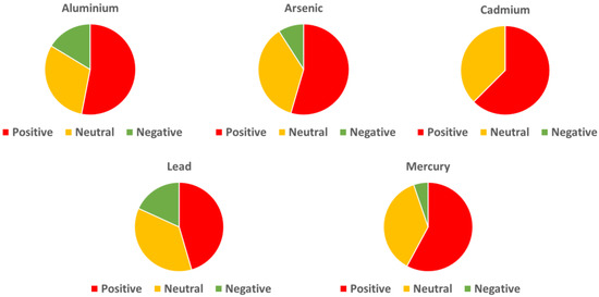 As is a well-known environmental toxicant, and, although a growing body of evidence has reported that even low concentrations of As impair neurological and cognitive functions [119], the exact mechanism of action of As remains to be elucidated (see [105,120,121,122] for more details). However, the following impacts of As exposure have been described: