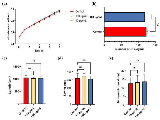 3.2. ARE Did Not Affect Food Selection, Proliferation, and Development of C. elegans