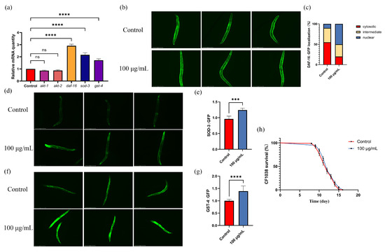 3.9. ARE Upregulated the Expression Levels of the daf-16, sod-3, and gst-4