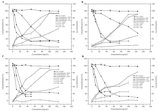 3.4. Changes in Antiproliferative Activity and Cytotoxicity in Different Parts of Pitaya Flowers after HAD and VD Treatments