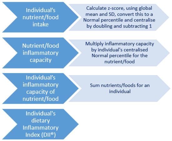 - Shivappa, N.; Steck, S.E.; Hurley, T.G.; Hussey, J.R.; Hébert, J.R. Designing and developing a literature-derived, population-based dietary inflammatory index. Public Health Nutr. 2014, 17, 1689–1696. [Google Scholar] [CrossRef] [PubMed]