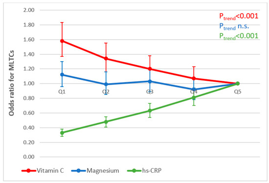3.5. Associations between Nutritional Biomarker Concentrations, Inflammation and MLTCs