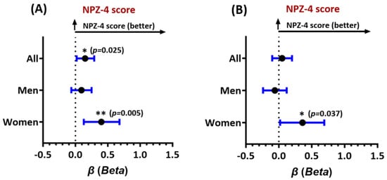 | Women | 0.018 (0.89) | 0.086 (0.51) | 0.024 (0.85) | −0.471 (<0.001) | −0.347 (<0.01) |
