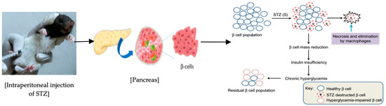 Mechanism of pancreatic beta-cells damage with intraperitoneal injection of streptozotocin [36].