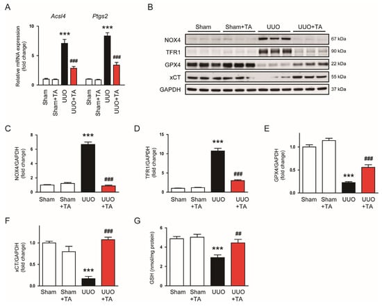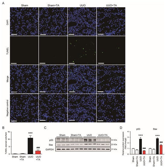 3.5. TA Inhibited Apoptosis and Ferroptosis in UUO-Induced Kidney Injury