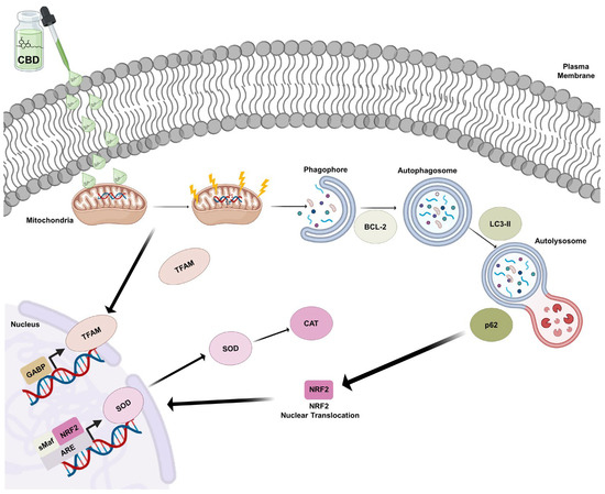 Therefore, CBD may contribute to slowing down glioblastoma progression and aid in the development of multi-target agents acting on the NRF2 mitochondrial biogenesis–autophagy axis (Figure 9).
