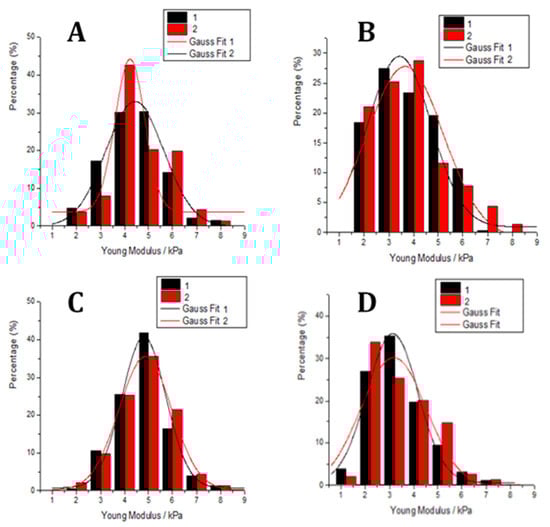 To ensure data accuracy, both trace and retrace images were recorded and compared during scanning. Additionally, to prevent any potential influence of the applied force on the imaging of the different central cell regions, detailed images of 2 μm × 2 µm were acquired under optimized imaging conditions. The spring constant of the cantilever was calibrated using a reference cantilever after piezo-sensitivity curves were recorded for each sample. Approximately 480 points were measured at the central part of the cells at random locations across the cell surface to average slight variations and obtain representative data. Elasticity was extracted from the force measurements following the method described by Roa et al. [54].