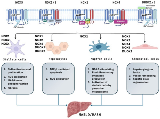 The impact of different NOX isoforms on the development of MASLD and its progression to MASH was addressed in several experimental and clinical studies (Table 1) [81,82].
