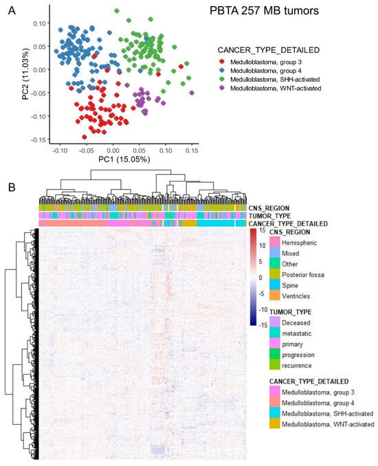 - Shapiro, J.A.; Gaonkar, K.S.; Spielman, S.J.; Savonen, C.L.; Bethell, C.J.; Jin, R.; Rathi, K.S.; Zhu, Y.; Egolf, L.E.; Farrow, B.K.; et al. OpenPBTA: The Open Pediatric Brain Tumor Atlas. Cell Genom. 2023, 3, 100340. [Google Scholar] [CrossRef] [PubMed]