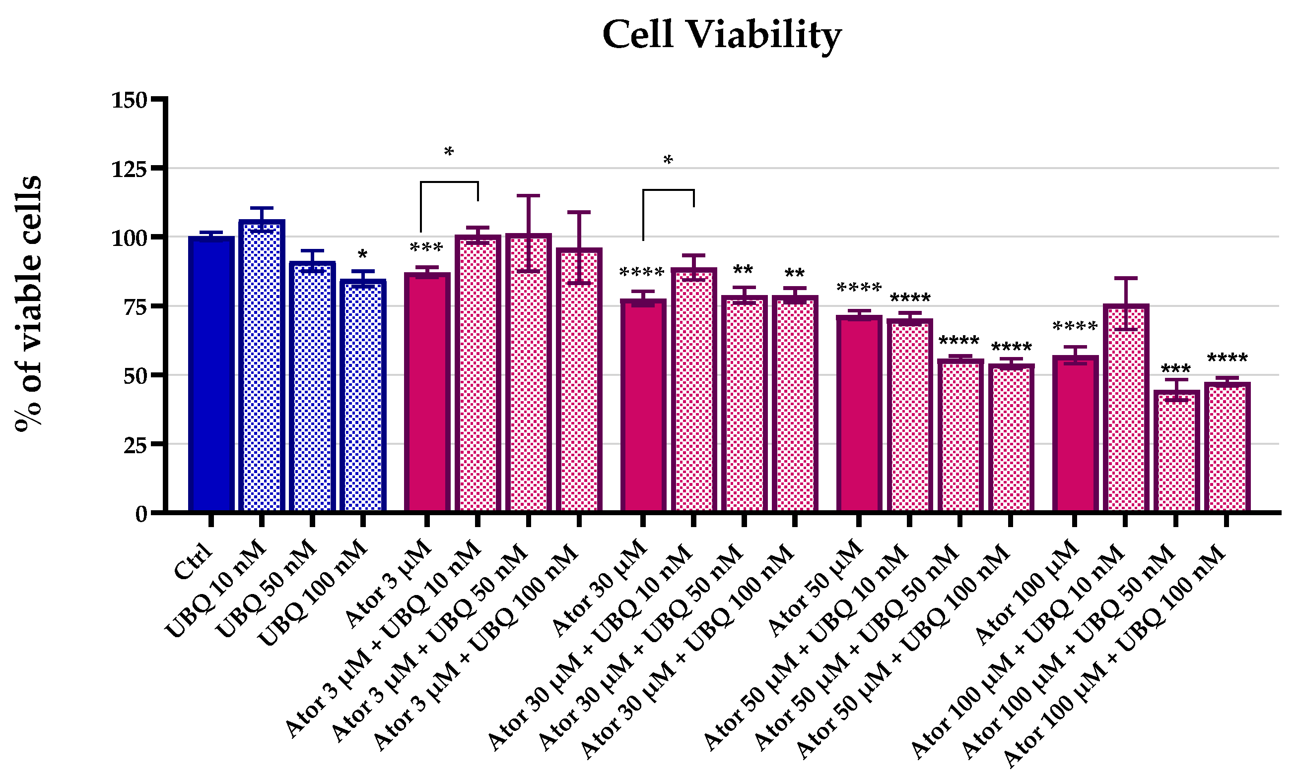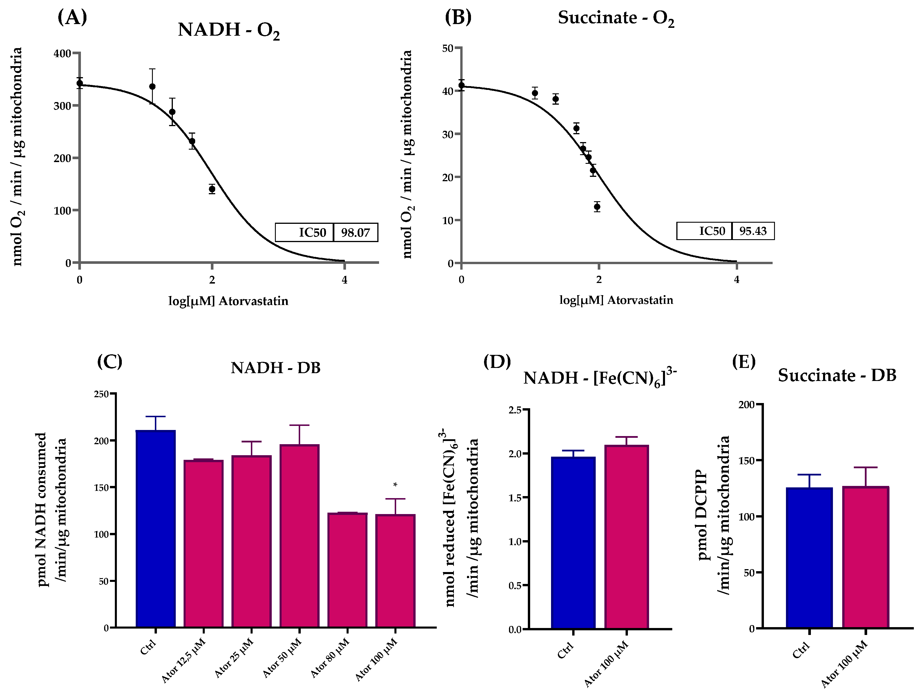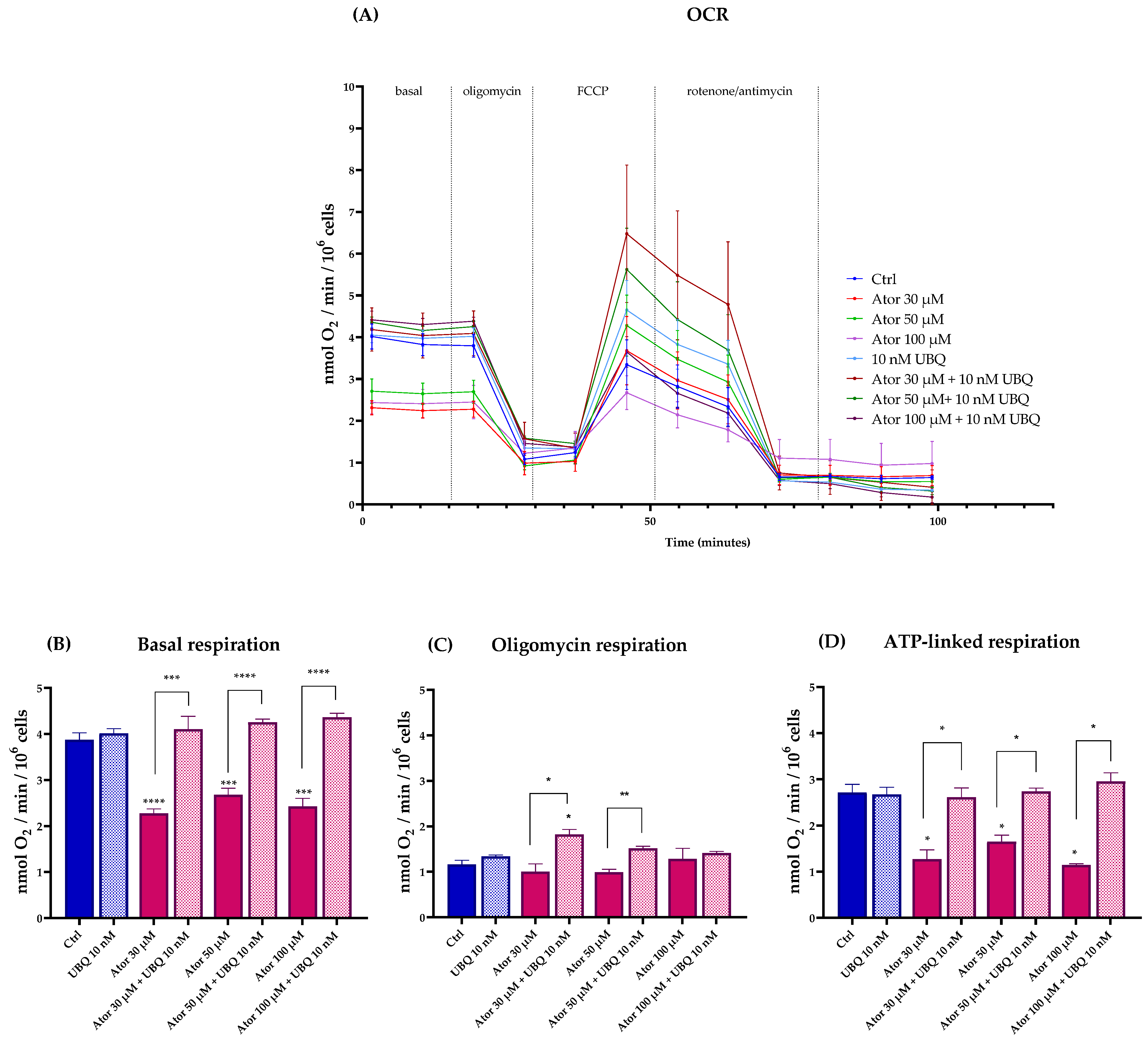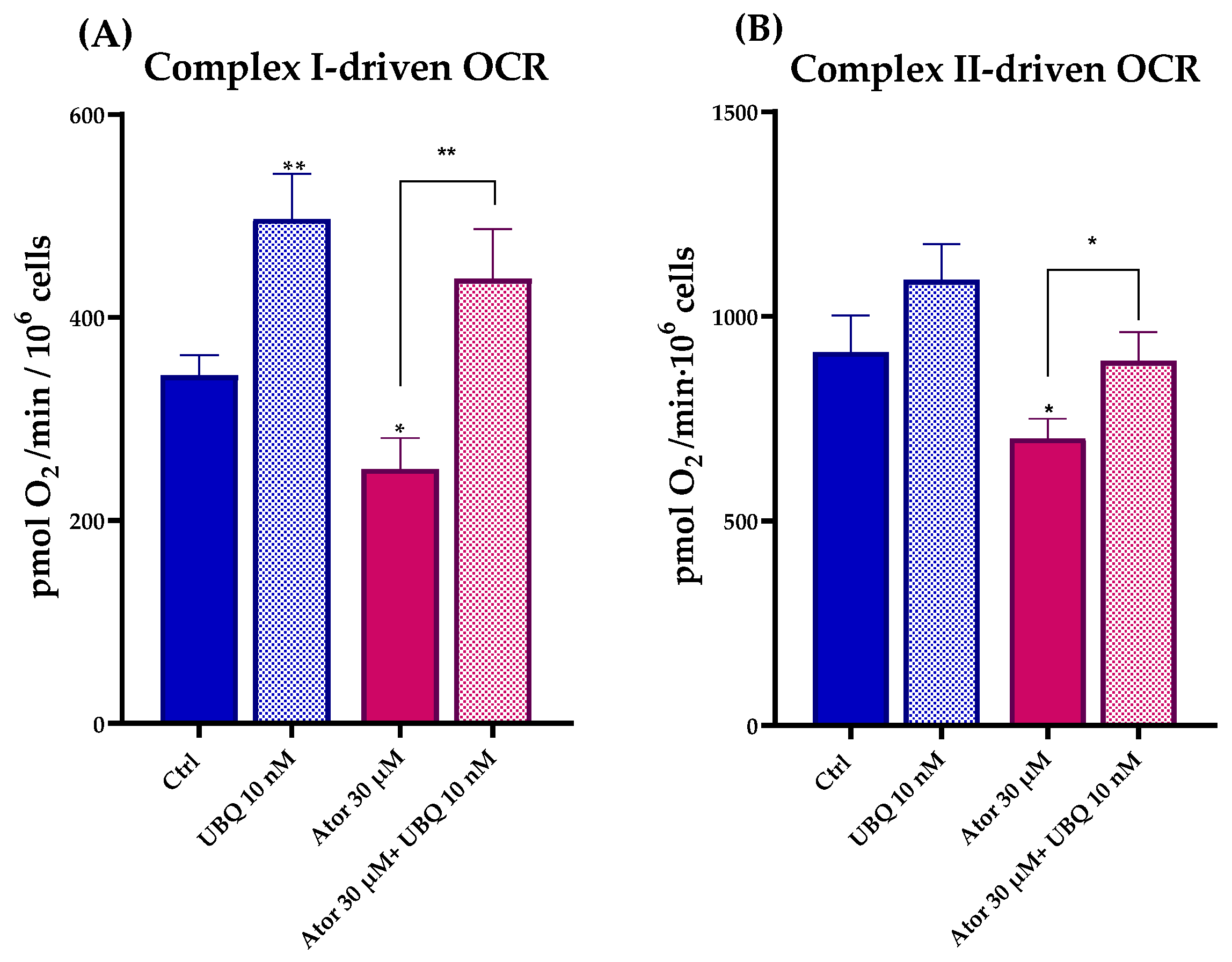 3.2. Atorvastatin Induces Bioenergetic Impairments