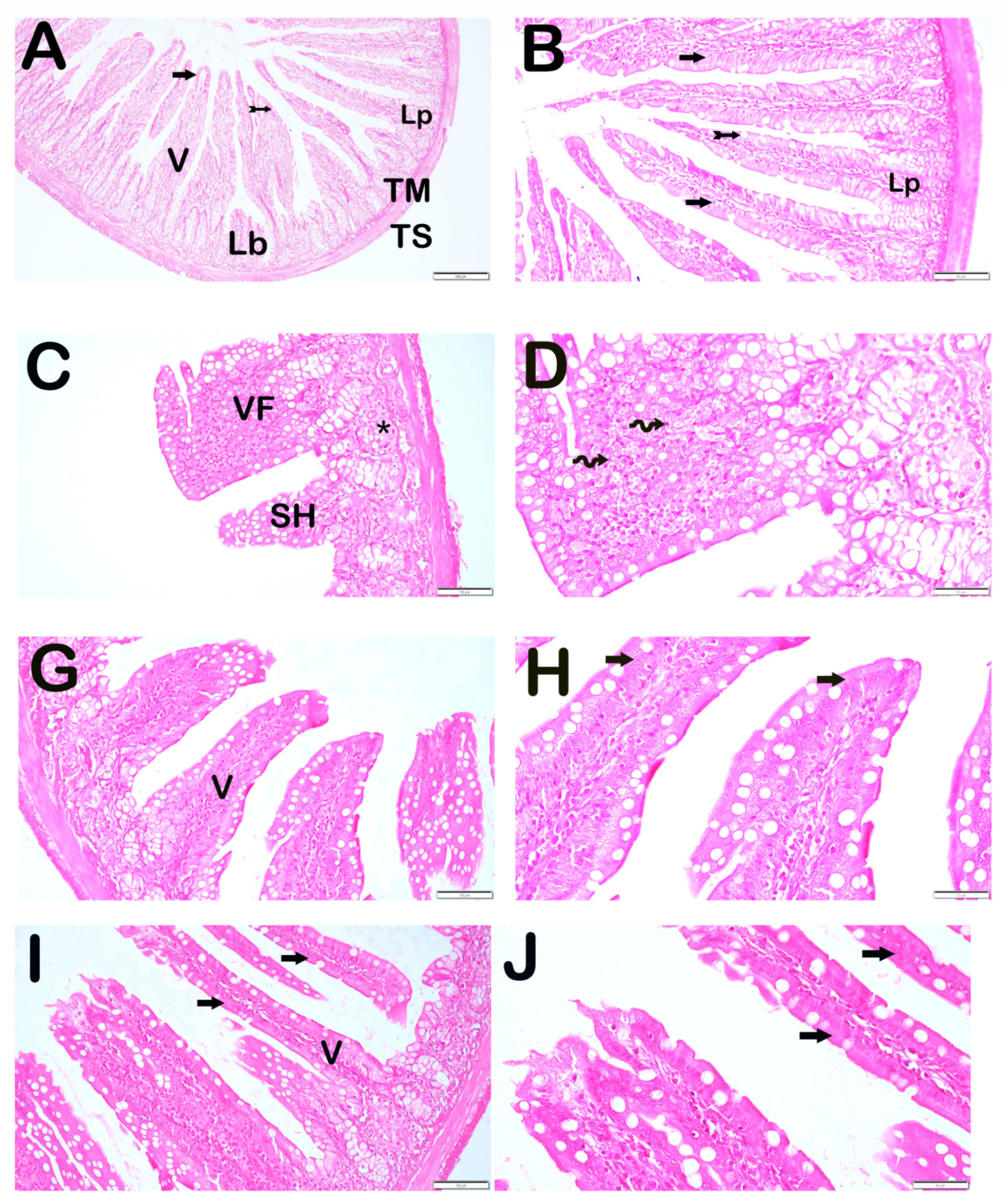 Groups | Villus Fusion | Shortening of the Villi | Inflammation | Hemorrhage | IHDS |