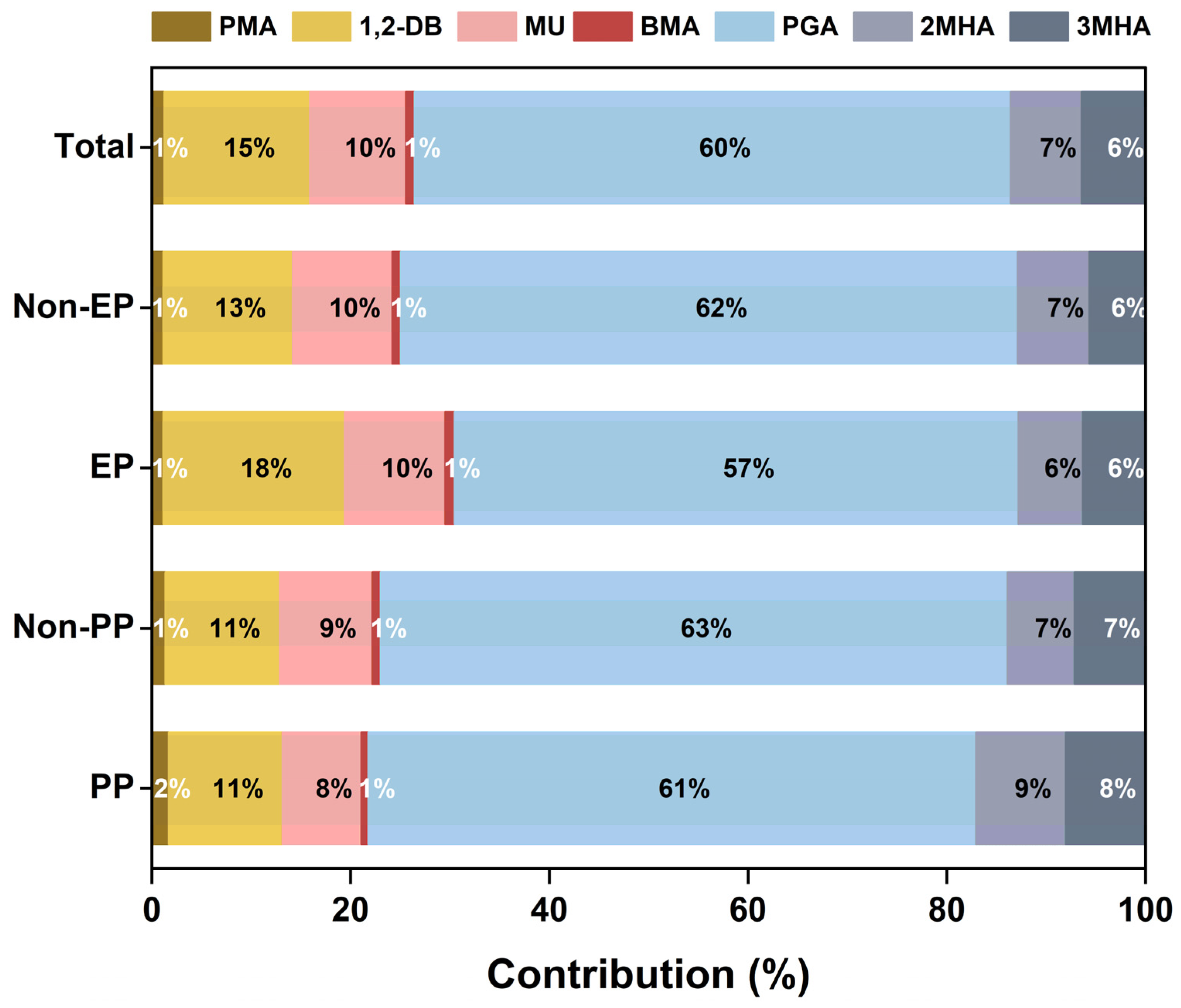 - Yan, M.; Zhu, H.; Luo, H.; Zhang, T.; Sun, H.; Kannan, K. Daily exposure to environmental volatile organic compounds triggers oxidative damage: Evidence from a large-scale survey in China. Environ. Sci. Technol. 2023, 57, 20501–20509. [Google Scholar] [CrossRef]
