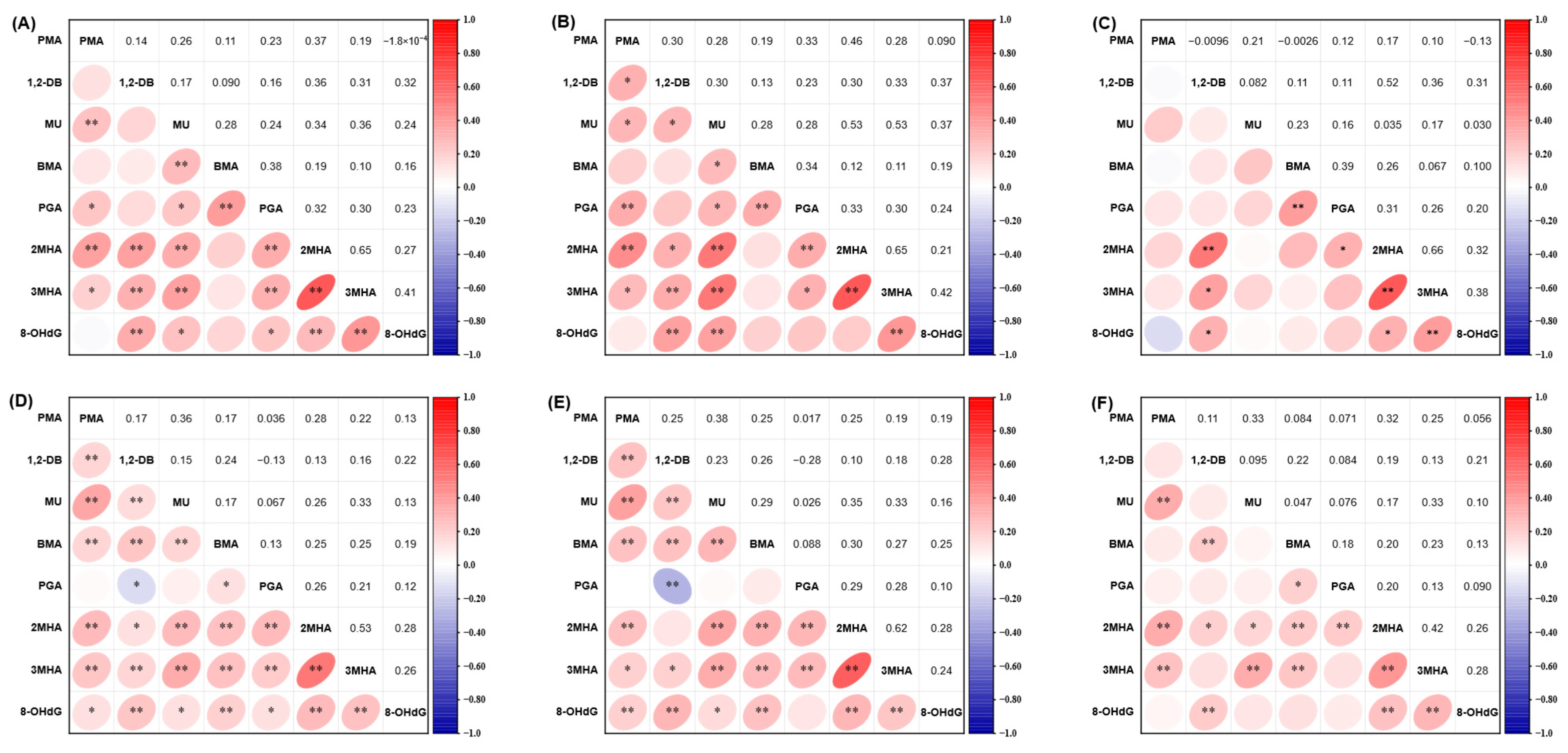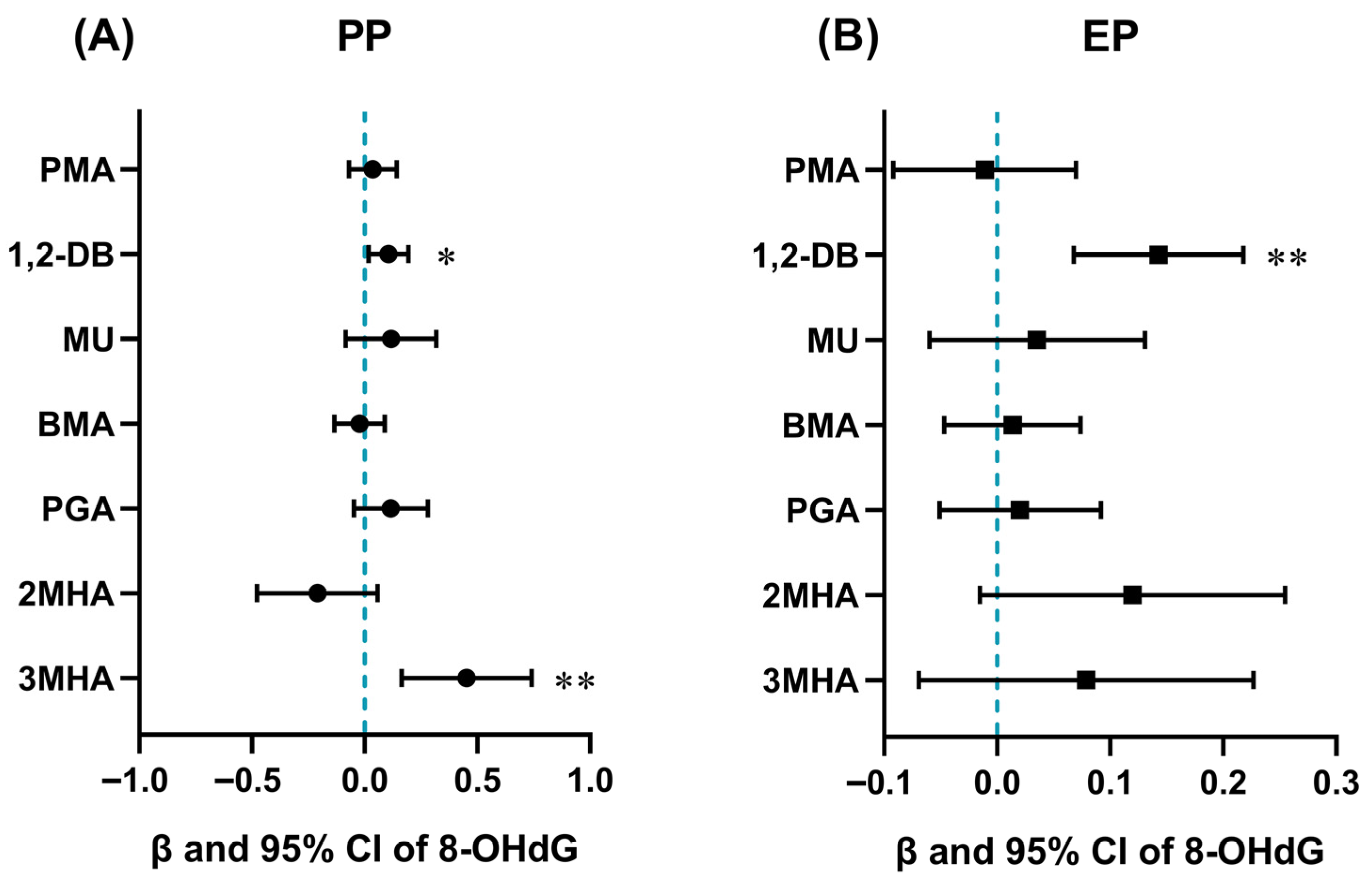 3.3. Relationship of 8-OHdG with BTEX Metabolites