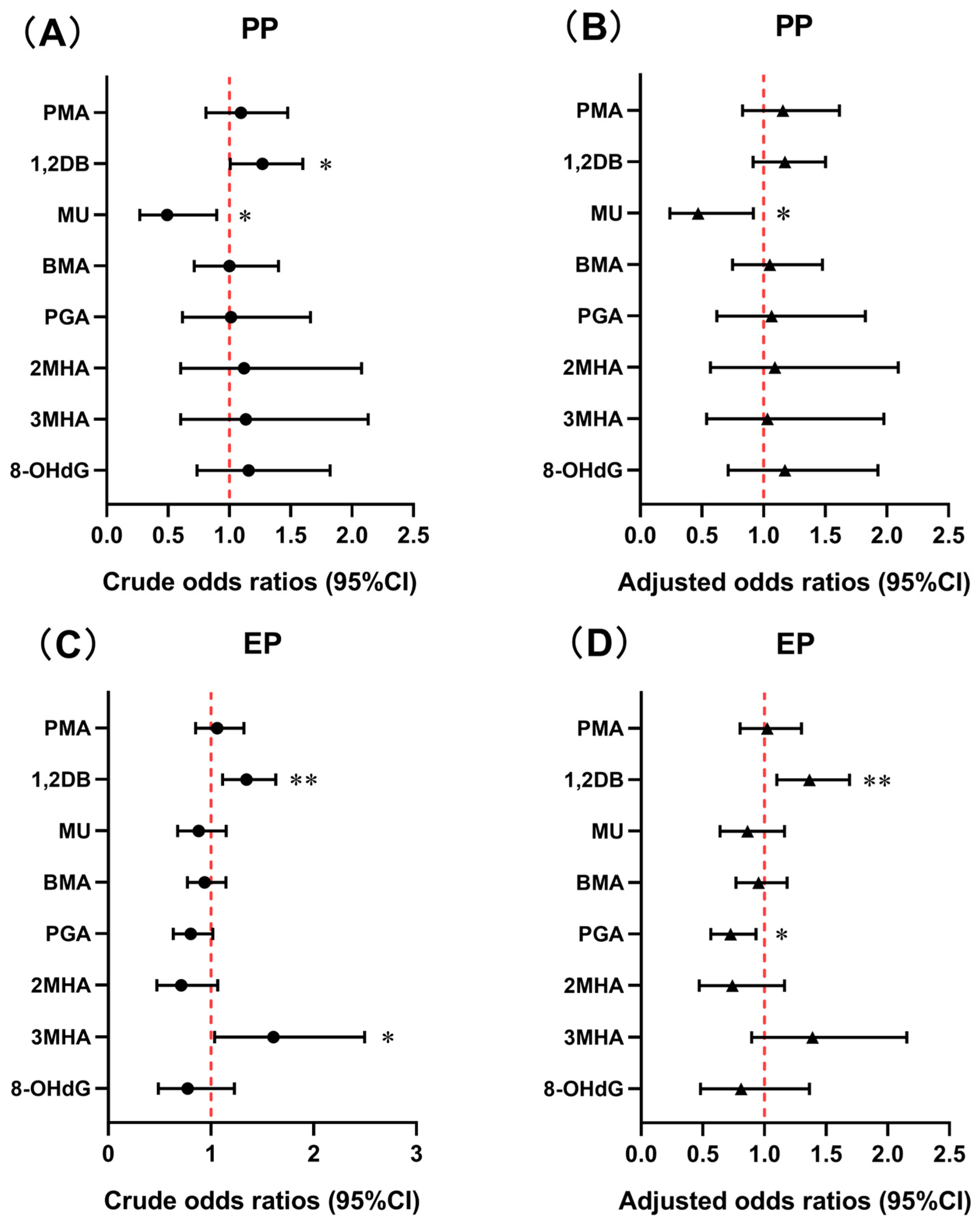3.4. Association of BTEX Metabolites and Oxidative DNA Damage with Precocious Puberty
