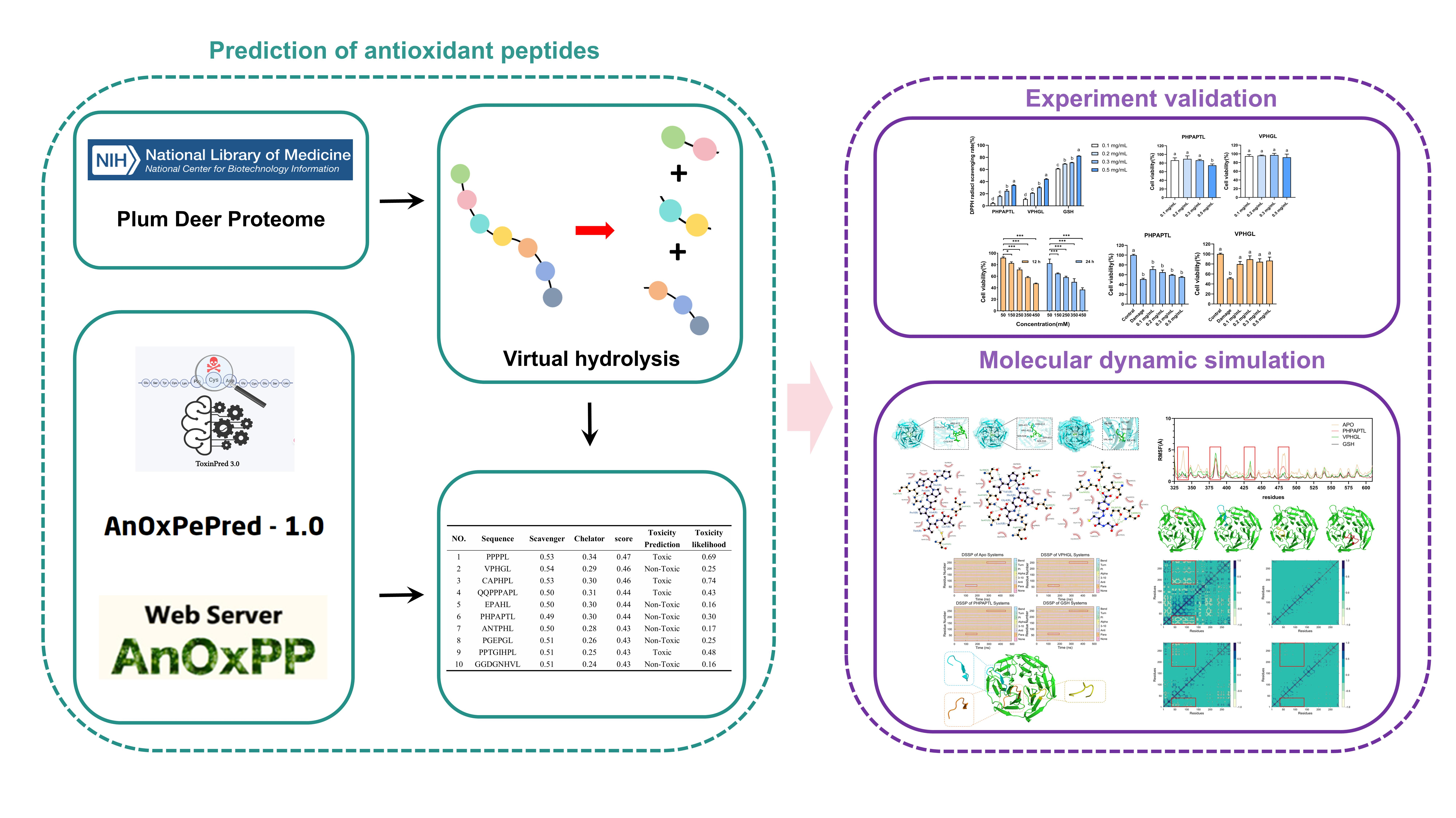Jiang, Y.; Zheng, J.; Zhang, Y.; Liu, Y.; Zeng, L.; Han, W. Discovery of Deer Antler-Derived Antioxidant Peptides Through Computational and Cell-Based Approaches. Antioxidants 2025, 14, 1169. https://doi.org/10.3390/antiox14101169