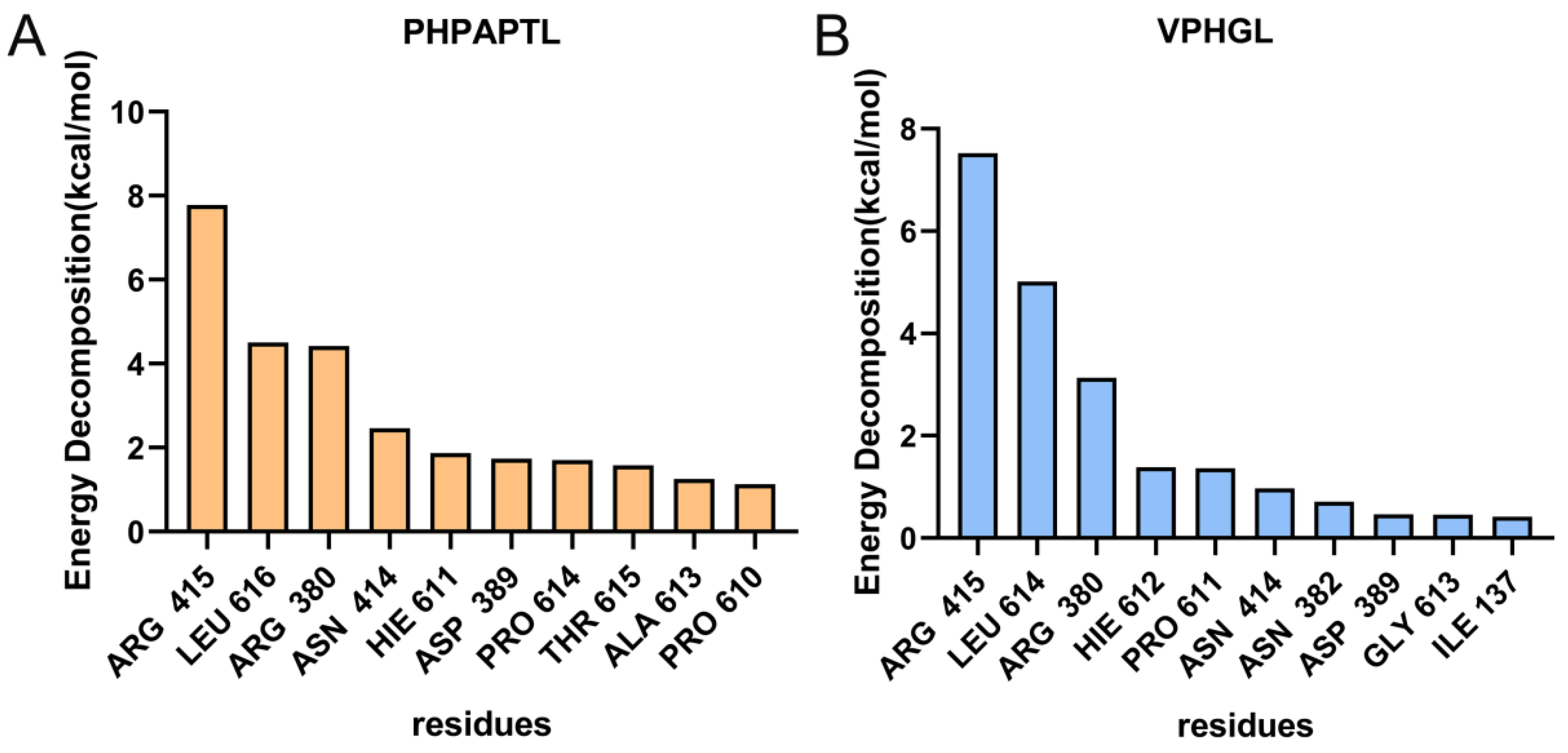2.12. Molecular Mechanics Poisson–Boltzmann Surface Area (MMPBSA) Analysis
