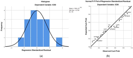 In Table 12 were presented R2, RMSE, and AIC values for the fitting models. Among the models tested, the Korsmeyer–Peppas model demonstrated a strong fit, especially for the liposome-loaded gel (R2 = 0.921), and the lowest RMSE and AIC values. Models like zero- and first-order kinetics, Hixson–Crowell, and Higuchi showed lower correlation and higher errors, particularly in the non-liposomal gel, indicating they may not adequately capture the complex behavior of polyphenol release from these gel matrices. The release exponent for both dermatocosmetic gels was smaller than 0.5 (n = 0.4862 for CBG1.25-L-PcF and n = 0.3486 for CBG1.25-PcF), confirming a Fickian diffusion behavior. Therefore, the inclusion of liposomes in CBG1.25-L-PcF significantly improved the release control and model fit, supporting the role of liposomes in enhancing the stability and modulation of active compound delivery.
