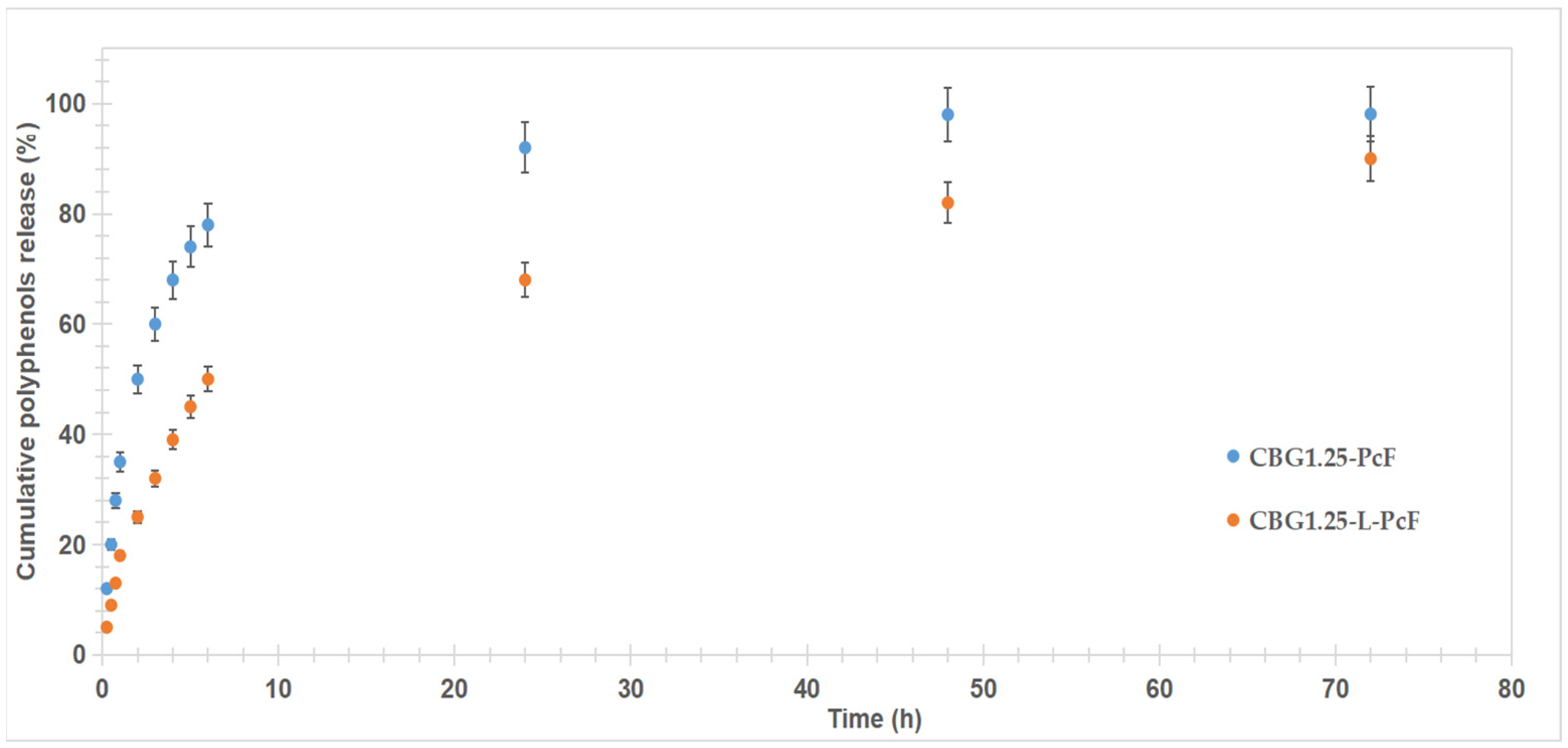 2.12. In Vitro Polyphenols Release Study